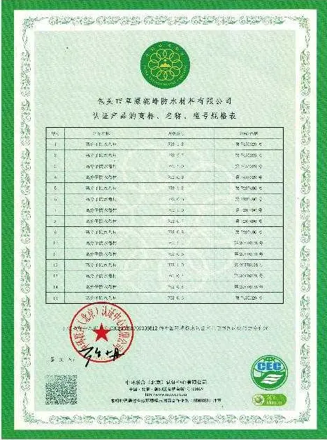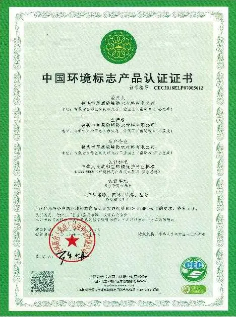 Henan Green Factory award with ISO14001 and eco-label certification.