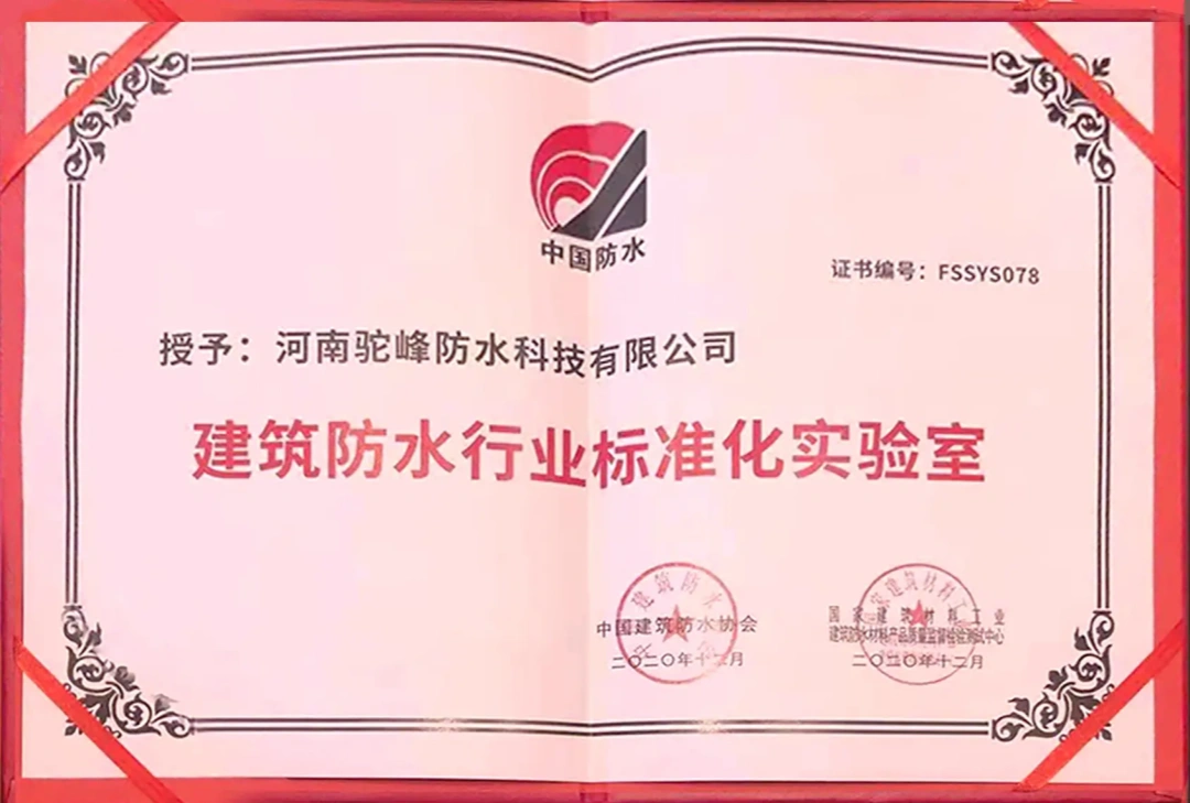 The “Standardization Laboratory for Building Waterproofing Industry” is evaluated strictly by the China Building Waterproofing Association in accordance with national standards, symbolizing the affirmation of camel TuoFeng waterproofing in the standardization system of the waterproofing industry!